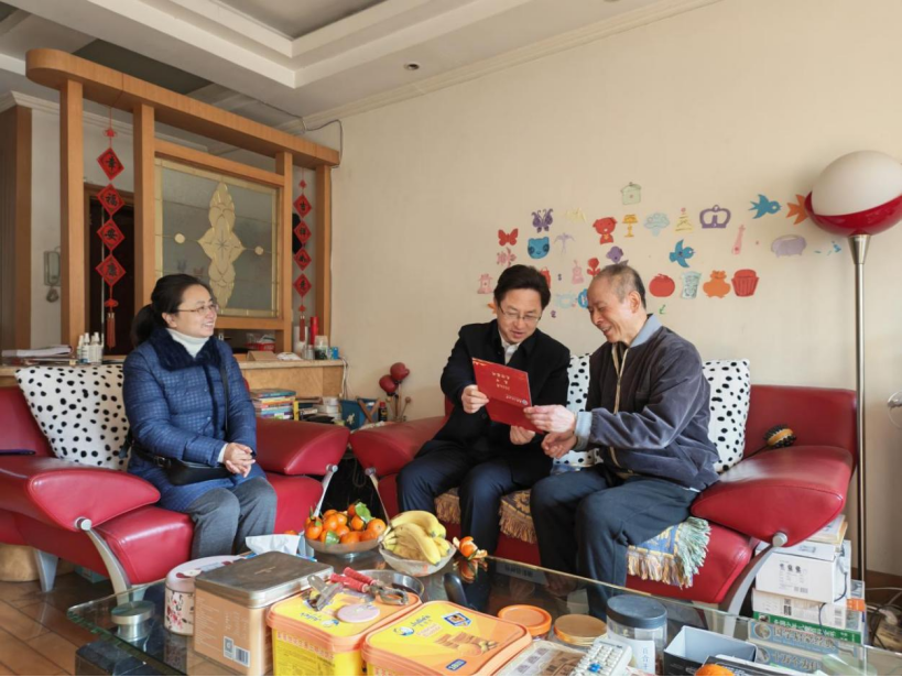在退休老领导家中,慰问人员与老领导亲切交谈,询问近期身体健康状况、退休生活状态、家庭喜事趣事。慰问组倾听老领导的心声,感谢他们过往为学校建设发展几十载的辛勤付出,希望他们奉献余热,继续为学校发展建言献策。